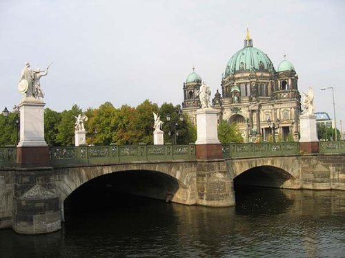 柏林大教堂巍然耸立在菩提树下大街东头。它是新教的教堂,也是霍亨索伦王朝的纪念碑,在它的穹顶下长眠着霍亨索伦家族的90多名成员。威廉二世皇帝非常重视这座教堂的建造。教堂内有老照片展,偶尔也有风琴演奏会。