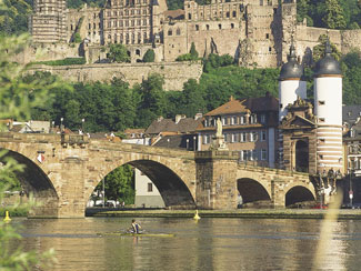 在古曼海姆的地图上,圆形的环行路内是纵横交错的像棋盘一般的街道,由此可以想见17-18世纪人们按照规划建造的城市是个什么样子。沿着车站正面的凯撒街(Kaiserstr.)向前就是腓特烈广场(Friedrichplatz),中央伫立着小镇的象征——19世纪末建成的水塔(Wasserturm),是新艺术风格的,塔的周围是公园。从这里延伸着布朗肯·海德堡街(Planken Hteidelberger Str.),是曼海姆的主要街道。镇的中心是阅兵广场Paradeplatz,向右是集市广场(Marktplatz)。德国最大的巴洛克风格的选帝侯宫(Kurfuerstliches Residenzschloss),建于18世纪。17世纪末法国军队攻占海德堡后,统治南德意志的王储便建造了这座宫殿。现在,宫殿的大部分经过改造已用作大学校舍,其余如谒见厅、曾举行音乐会的骑士厅以及宫殿礼拜堂等向公众开放。从法兰克福、斯图加特乘ICE特快需40分钟。