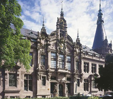 同城里的许多建筑一样,市府礼堂的历史也与大学密切相关。它是1886年为庆祝大学建校500周年而建的大礼堂,其仿文艺复兴的建筑风格和红砂岩外表同王宫及大学图书馆颇是相配。今天市府礼堂是会议及活动中心。